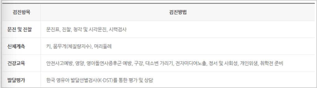 영유아 건강검진 항목