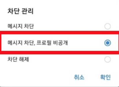 단순 친구차단과 프로필 비공개는 차이가 있습니다. 친구차단의 경우 내프로필은 상대방에게 노출되고 상대방이 나에게 메세지를 보낼때 내가 읽지 않는것으로만 보입니다.