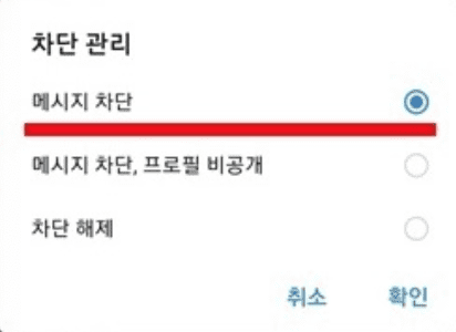8. 차단친구관리 항목을 보면 하단 메세지차단, 프로필 비공개 항목이 있습니다.