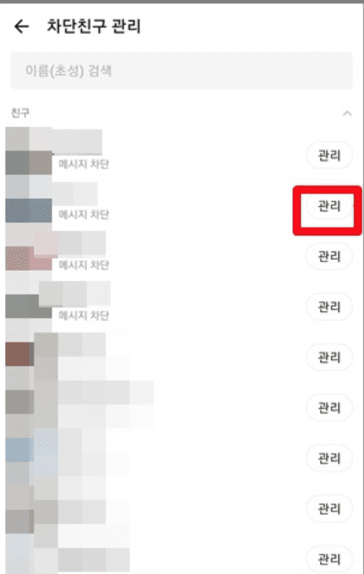 5. 친구관리 항목 에서 [관리] 메뉴로 들어갑니다.