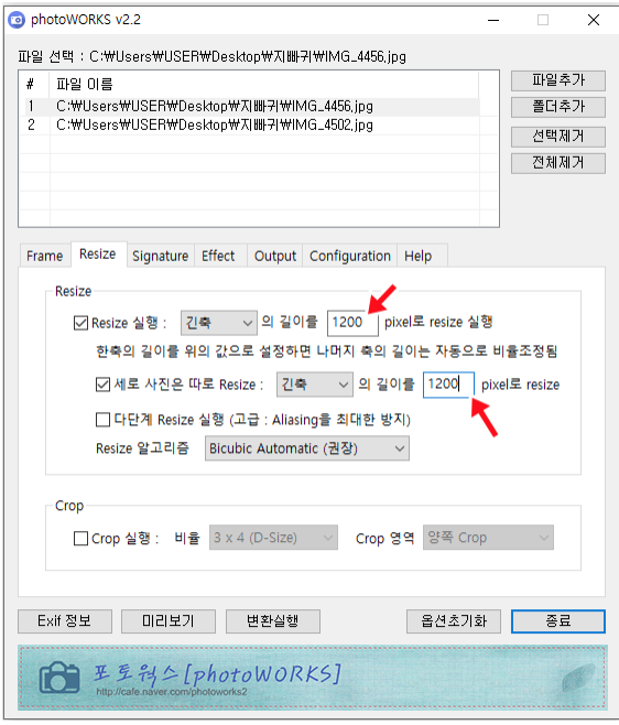 3. 포토웍스 사용법 에는 포토웍스를 실행후 파일추가를 해줍니다. (파일추가갯수는 무한으로 불러올수 있습니다.)