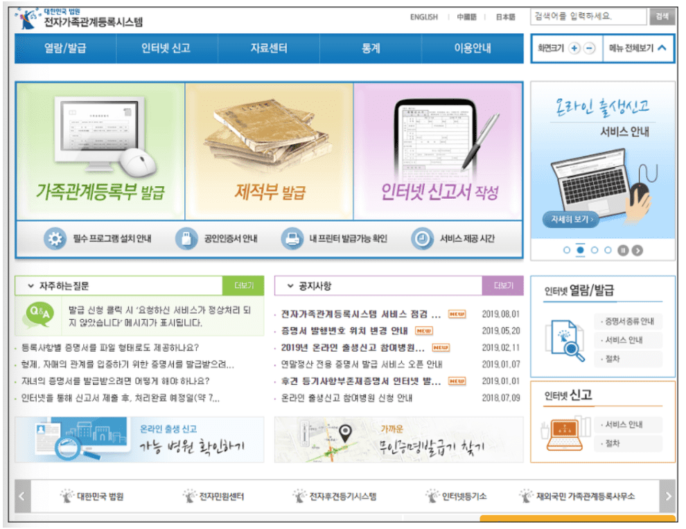 가족관계증명서 인터넷발급 방법